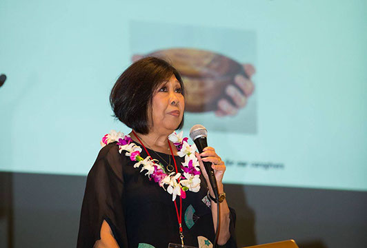 Keynote speaker Emme Tomimbang spoke of caring for her husband.