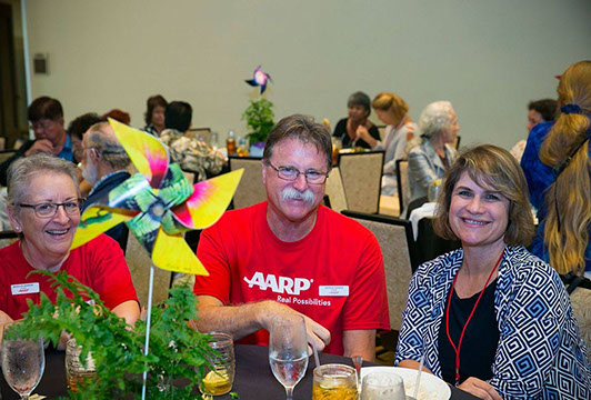 AARP Community Outreach Director Jackie Boland enjoys lunch with Kona AARP.